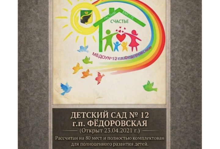 В Федоровском поселении отметили пятилетие со дня открытия детского сада №12. Учреждение распахнуло свои двери 23 апреля 2021 года и стало долгожданным проектом для жителей.
