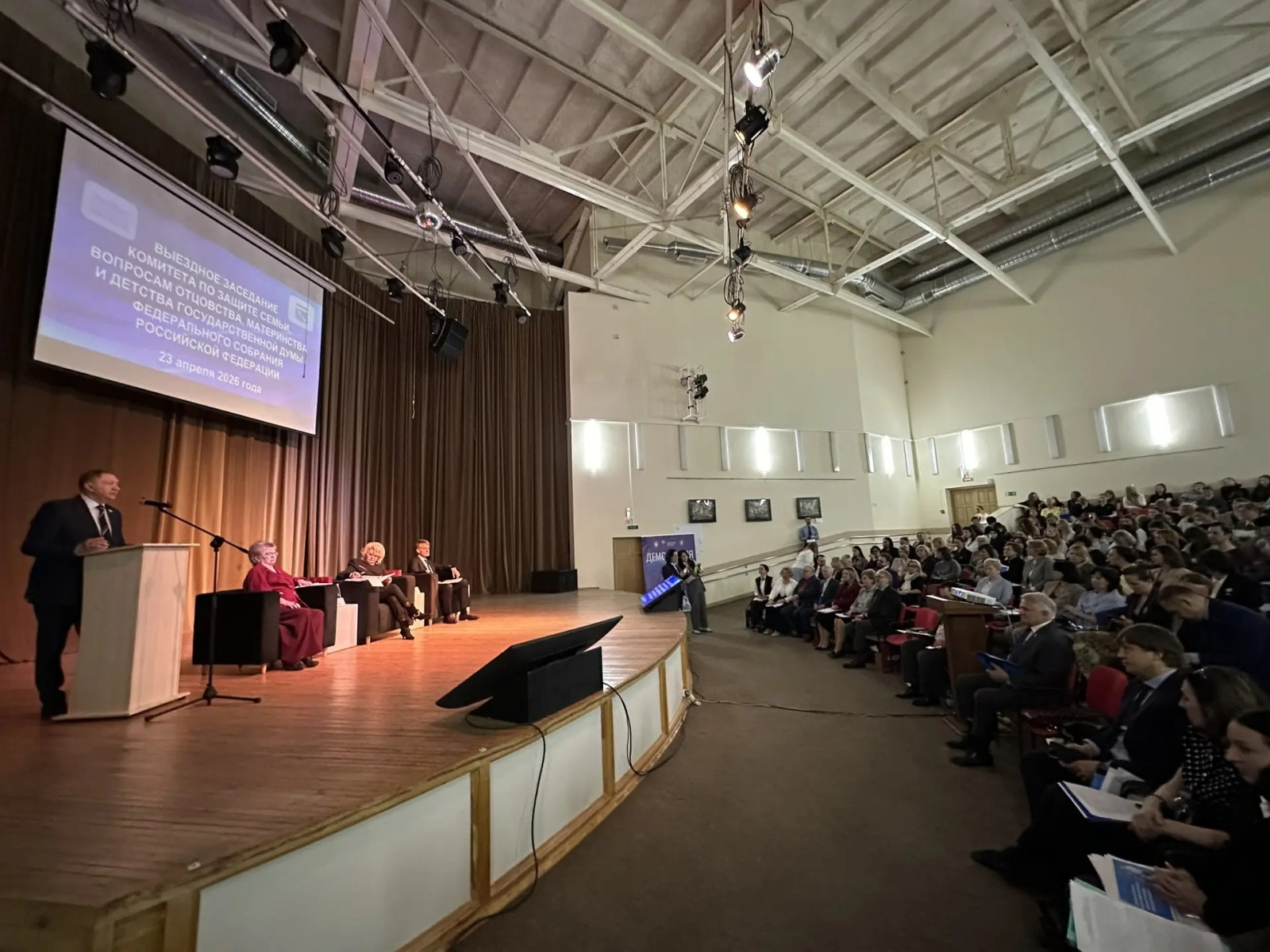 Накануне, 23 апреля, на базе Ленинградского государственного университета имени А.С. Пушкина состоялось выездное расширенное заседание Комитета Госдумы (ГД) по защите семьи, вопросам отцовства, материнства и детства под руководством Нины Останиной. Депутат ГД от Ленобласти, член Аграрного комитета Сергей Яхнюк, принимавший участие в мероприятии, поблагодарил коллег за решение провести мероприятие именно в 47-м регионе.