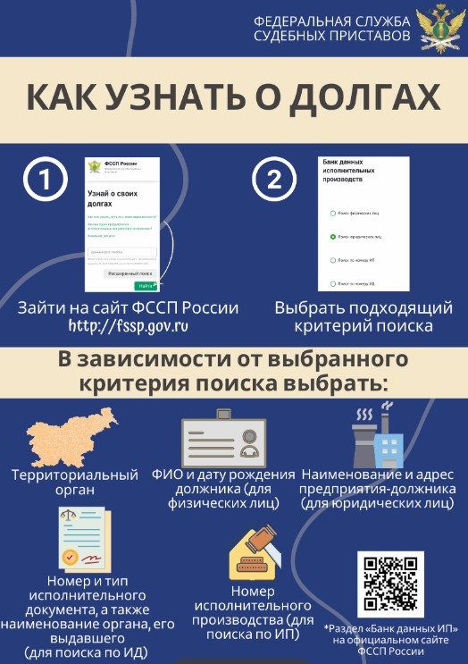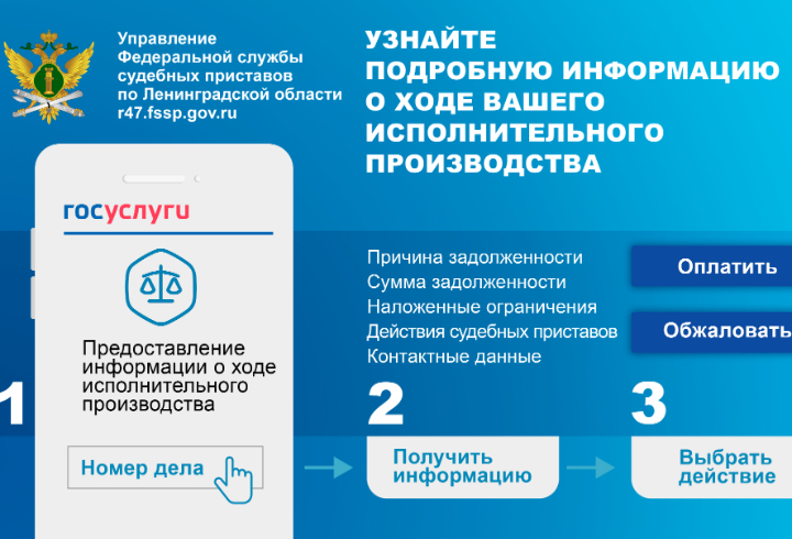 Управление Федеральной службы судебных приставов по Ленинградской области информирует, что наличие исполнительного производства теперь можно проверить на портале «Госуслуги» в сервисе проверки долгов.