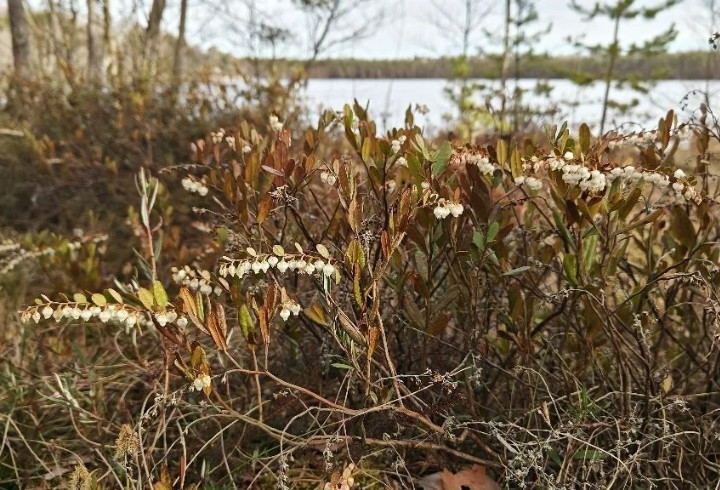 В болотных массивах Ленинградской области и Санкт-Петербурга началось цветение кассандры однобокой - редкого вечнозеленого кустарничка из семейства вересковых. Растение привлекает внимание своими характерными белыми цветами в форме колокольчиков, собранными в односторонние соцветия. Именно эта особенность дала ему ботаническое название.