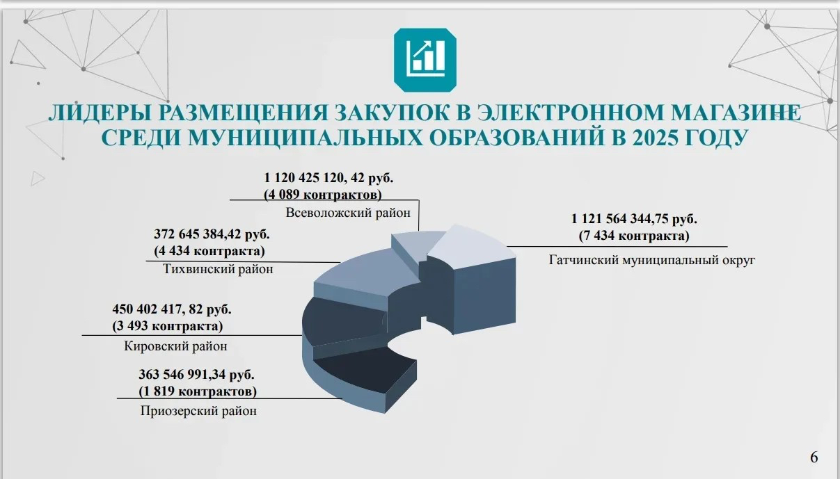 Задача на 2026 год — довести долю муниципальных закупок через агрегатор до 50%. Среди лидеров по внедрению цифровых решений губернатор отметил Гатчинский округ и Всеволожский район.