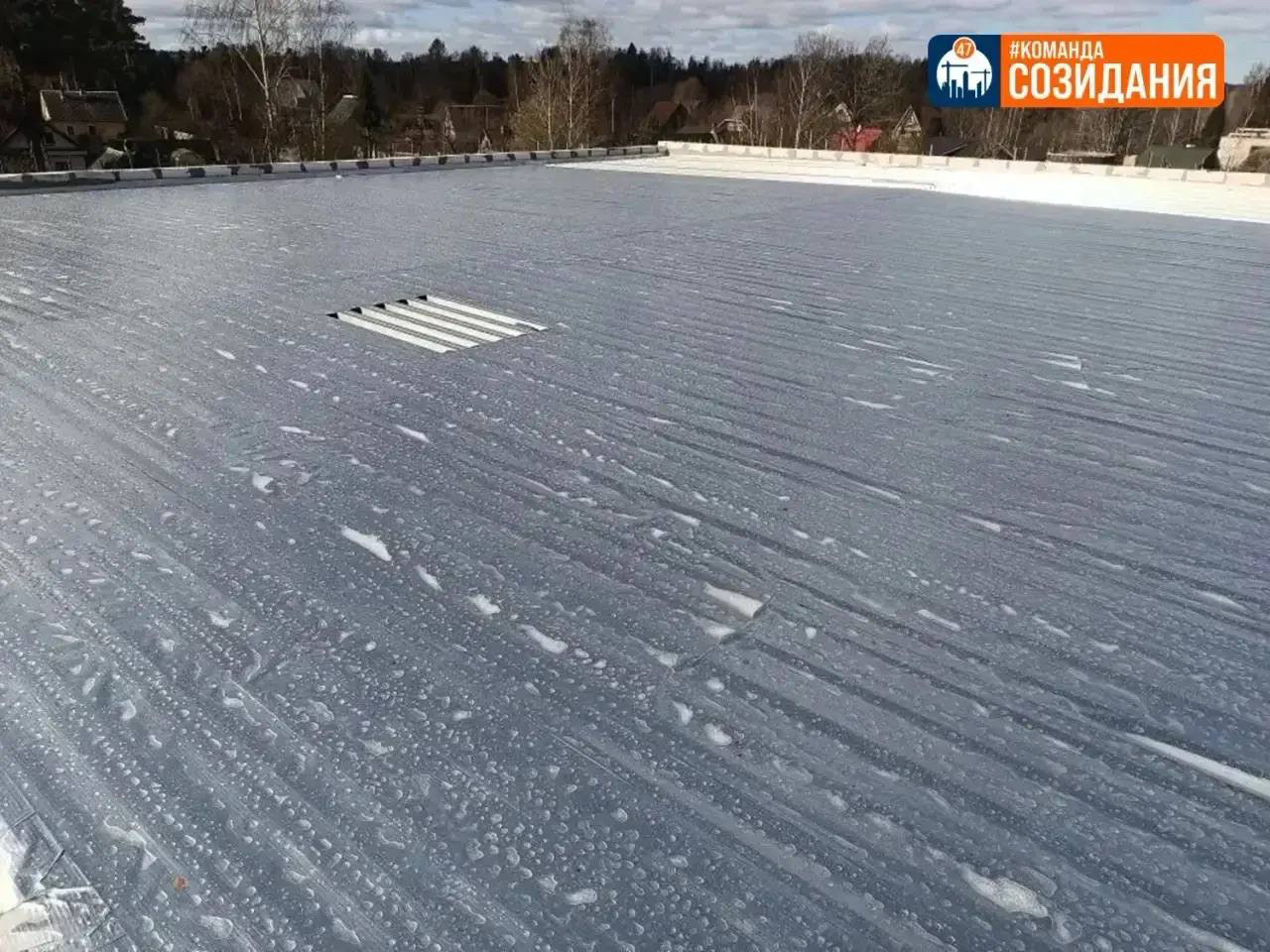 Параллельно начат монтаж инженерных систем — вентиляции и электроснабжения, а также устройство кровли. Уже уложен нижний защитный слой крыши, который предохраняет здание от воздействия осадков.