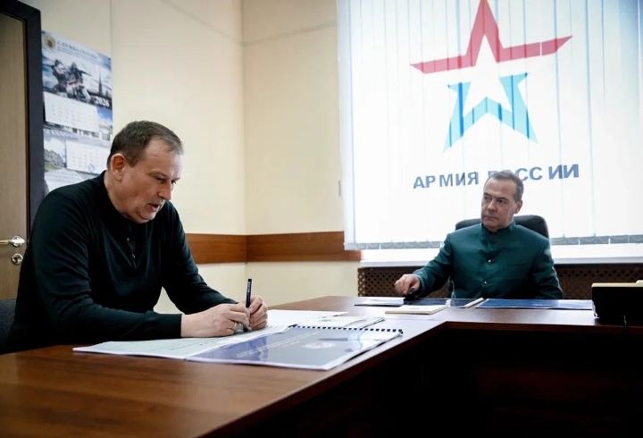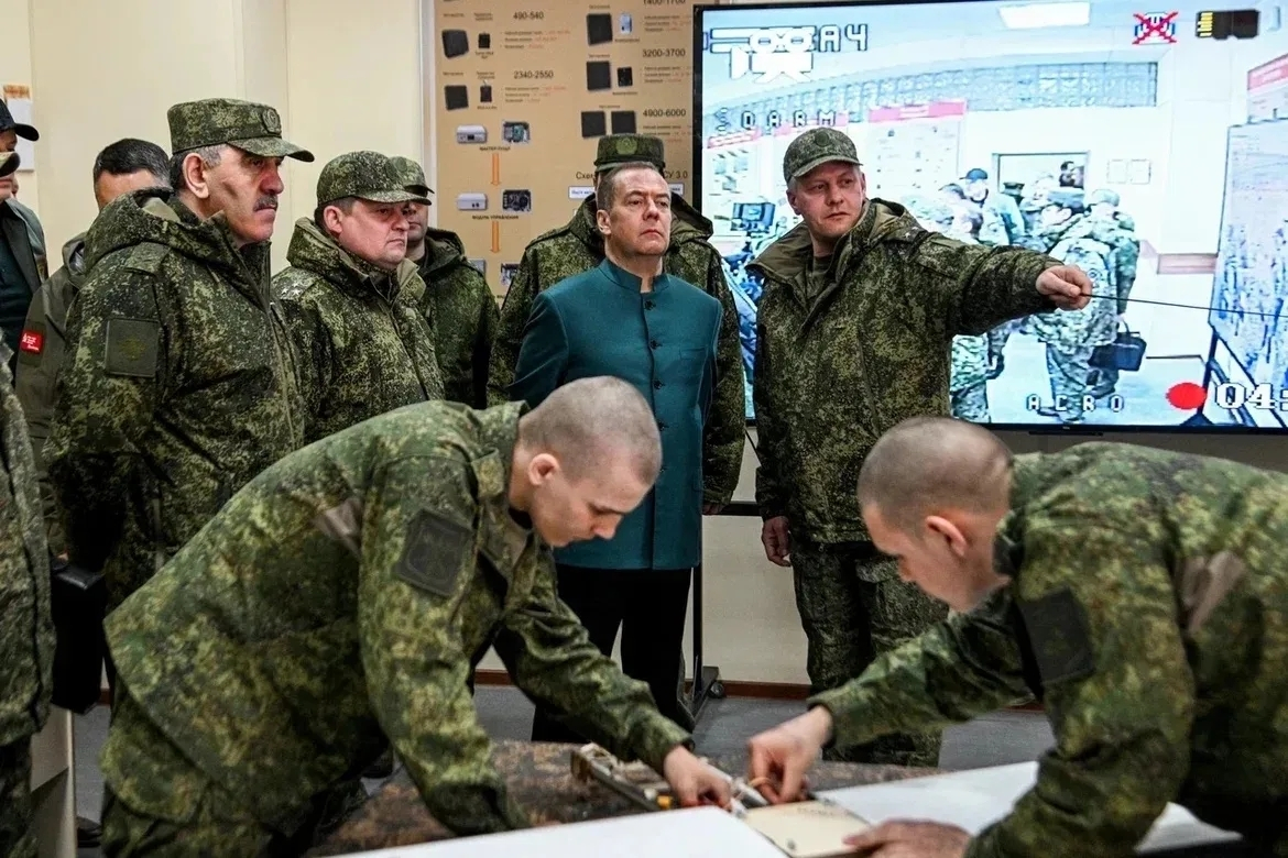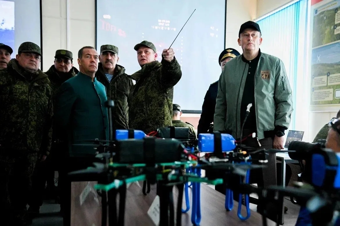 Также Дмитрий Медведев и Александр Дрозденко посетили учебный центр Ленинградского военного округа, где осмотрели учебные точки подготовки операторов беспилотных систем и FPV-дронов к выполнению боевых задач.